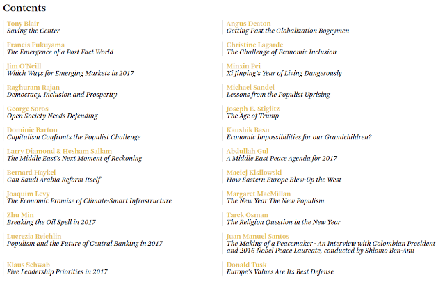 Project Syndicate´s headline is "The global populist revolt" and what danger lies ahead with the new international disorder. (Which the ´global elite´ has the main blame for.)