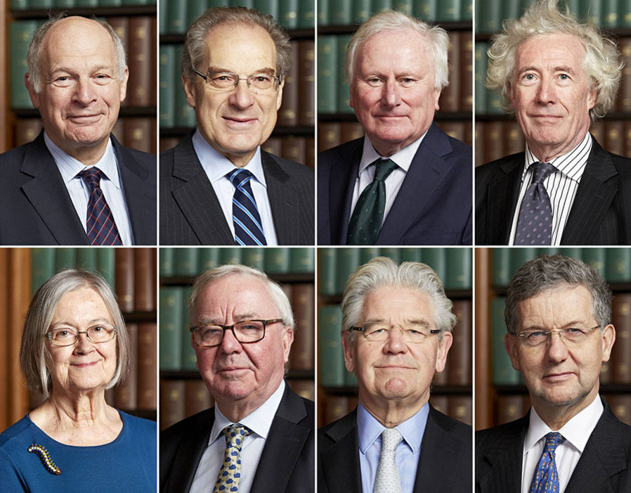 Issued by the Supreme Court of (top row, from the left) Lord Neuberger, Lord Mance, Lord Kerr, Lord Sumption, (bottom row, from the left) Lady Hale, Lord Clarke, Lord Wilson and Lord Hodge, who agreed with the majority decision that the Government could not trigger Article 50 without Parliamentary approval.