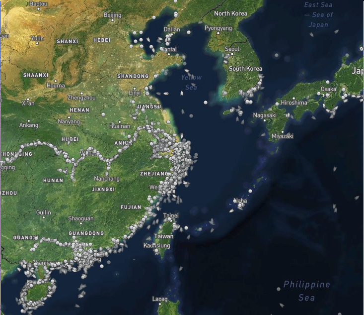 Shipping traffic in the China Sea and approaches 28 Feb 2017