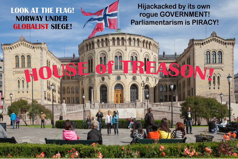 Dagens politiske styringsmodell, parlamentarisme er ikke det samme som ekte demokrati. Parlamentarisme hører innunder maritim lov og er Bilderberggruppens politiske verktøy brukt til å kontrollere, undertrykke, plyndre og svike eget folket. De parlamentariske politikerne som styrer Norge i dag har for lengst gitt bort oljen vår og forsynt seg av fortjenesten av dette. Parlamentarismen er en styringsmodell utviklet av Vatikanet og Rothschild bank for å kunne underlegge dem, og det britiske kongehus med familie, deres kontroll og dermed også eierskap til
