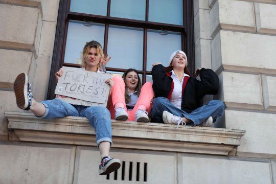 However, following peaceful marches outside Parliament in London, some of the protesters were seen drinking alcohol and climbing on top of traffic lights around Westminster.