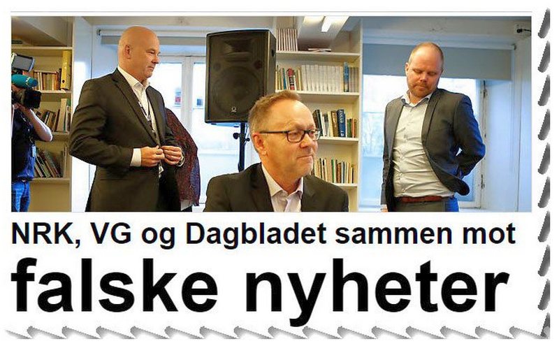 De store nyhetsformidlerne i Norge formidler nyheter til seg selv, som de får levert av seg selv, de eier hverandre, ligger med hverandre og med politikere de liker og som liker dem, og de kontrollerer og går god for at hverandres nyhetssaker er ekte og sanne, og at alle andres er tvilsomme, hatefulle og rasistiske, og det de serverer, kommer fra samme sted og har samme politiske ståsted og vinkling. Og alt stammer fra venstresiden i norsk politikk.