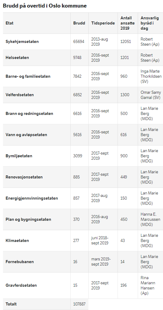 Brudd på overtid i Oslo kommune