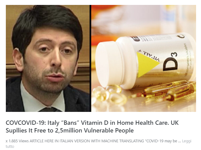 And they quote, just as Lady News did in the previous article, what happened in London. “In Great Britain, on the other hand, and even earlier in Scotland, with governmental provision, vitamin D supplementation was recently ordered to 2.7 million subjects at risk of COVID-19 (the elderly, the black population and residents of the RSA ) with an operation that the House of Commons defined as “low-cost, zero-risk, potentially highly effective action”: a lively scientific debate followed, with some reservations expressed by NICE but with the support of the Royal Society of London, who defines it as "... seems nothing to lose and potentially much to gain" ".