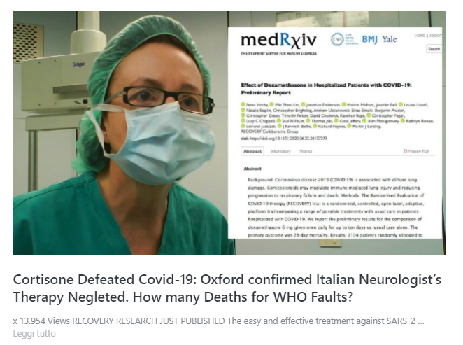 This has inevitably fuelled the suspicion that the only therapeutic avenues against COVID-19 supported and encouraged by the PD-M5Stelle government are those that trigger Big Pharma's business with vaccines. If this letter from 61 doctors were to remain ignored, it would be the confirmation of an orientation that could takes on a criminal connotation from ignorance ...