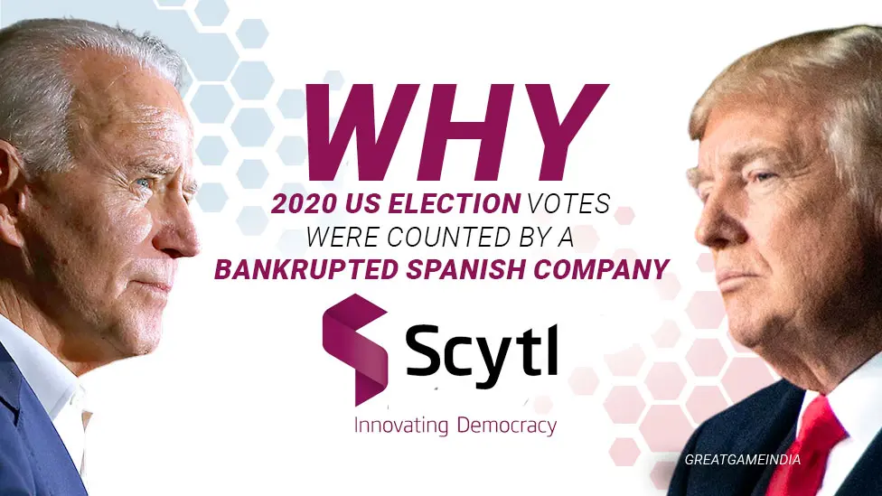 Days after it was revealed how 2020 US Elections were rigged by Canadian Crown Agent Dominion Voting Systems through a so-called “glitch”, now GreatGameIndia has found involvement of another dubious foreign company in US Election meddling. The votes cast by Americans were counted by a bankrupted Spanish company Scytl in Spain. Like Dominion Voting Systems, Scytl has a long history of election fraud in various nations including injecting backdoors in its election software.
