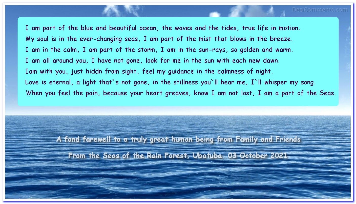 Quando você sentir a dor, porque seu coração se dilacera, saiba que não estou perdido, sou uma parte dos mares.