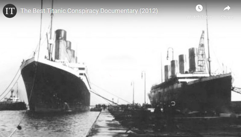 The conspirators forgot to put binoculars on the ‘Olympic’ (the Titanic). So, on the night of April 14th 1912, the ‘Olympic’ crashed into an ice berg, just under 24 hours too early. She sank, taking 1,523 souls with her.