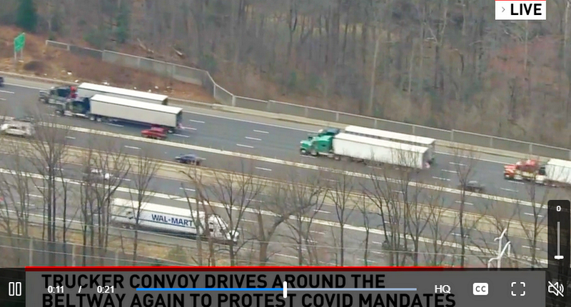 WATCH THE TRUCKER CONVOY AS THEY MAKE ANOTHER LOOP AROUND THE BELTWAYCaption: The Trucker convoy hits the Beltway for the 4th day.