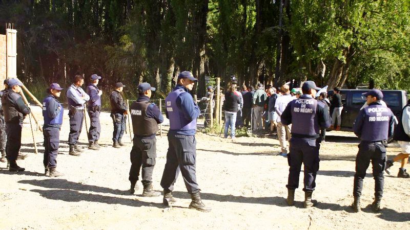 Upon arriving, they were met by Lewis’ private security as well as members of the Río Negro police, who cornered them and told them that they couldn’t even go to the bathroom without fear of arrest for trespassing, even though lakeshores are also legally considered public spaces. Guillermo Martín Caviasc — a journalist for Barricada TV, who was present at the demonstration — called the combination of local police and private security Lewis’ “private army” and remarked that the police officers present where “in a situation of subordination like if they were visiting a foreign state controlled by Lewis.”