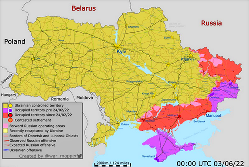 This as it now appears Russia is poised to also seize the key city of Severodonetsk in the Donbas amid continuing fierce street-to-street fighting. If subdued, this would put the Russian army in control over all of Luhansk province.