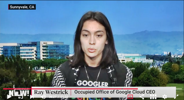 Myself, I think that Mohammad Khatami, a software engineer arrested at the sit-in at Google’s office in New York, is beatifically beautiful. Techie Ray Westrick, arrested in California, also in protest of Project Nimbus—some kind of killer-Cloud-AI collaboration with IsraHell—is supermodel lovely. (Roll the tape or scroll down this text to look.)