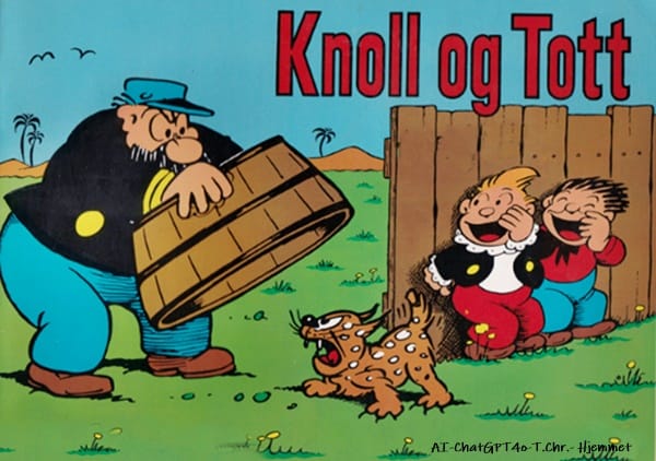 Knoll og Tott is the Norwegian name for The Katzenjammer Kids, which originated as a German-American comic strip by Rudolph Dirks in 1897. It became incredibly popular worldwide and is one of the oldest comic strips in history. The story revolves around two mischievous boys, Knoll and Tott (Hans und Fritz in the original), who constantly play pranks on adults, especially their mother and a strict captain figure.