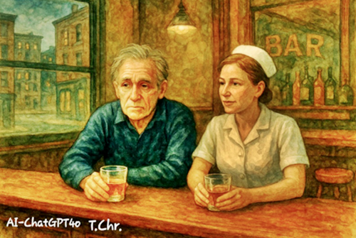 His hands cradled the glass like it might vanish if he let go. He wasn’t drunk — not yet. Just softened. Worn at the edges. A man too quiet to be noticed, too harmless to be feared. He didn’t come for the buzz. He came for the space. The way the dark let him think without judgment. The way the bartender nodded without asking.