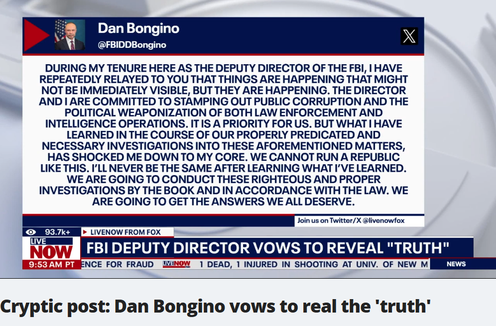 FBI DEPUTY DIRECTOR BONGINO VOWS TO REVEAL ‘TRUTH’ IN CRYPTIC SOCIAL MEDIA POST