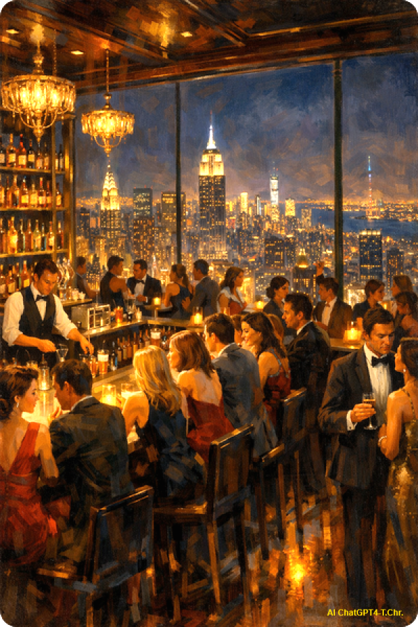 A photo here, a dinner there, a few warm emails with “my friend” and “missing you,” a plane ticket, an introduction to a crown princess or a European top diplomat. The closer the contact becomes, the harder it is to withdraw without having to explain everything. The more compromised a person is, the more control the one holding the documentation—and managing the network—has. In one corner of the sky bar sits a couple close together, like any ordinary infatuated pair out on the town, except that both are accustomed to bodyguards, press handlers, and diplomatic memos. They laugh softly, clink glasses, and gaze out over Manhattan as if everything down below were just scenery.